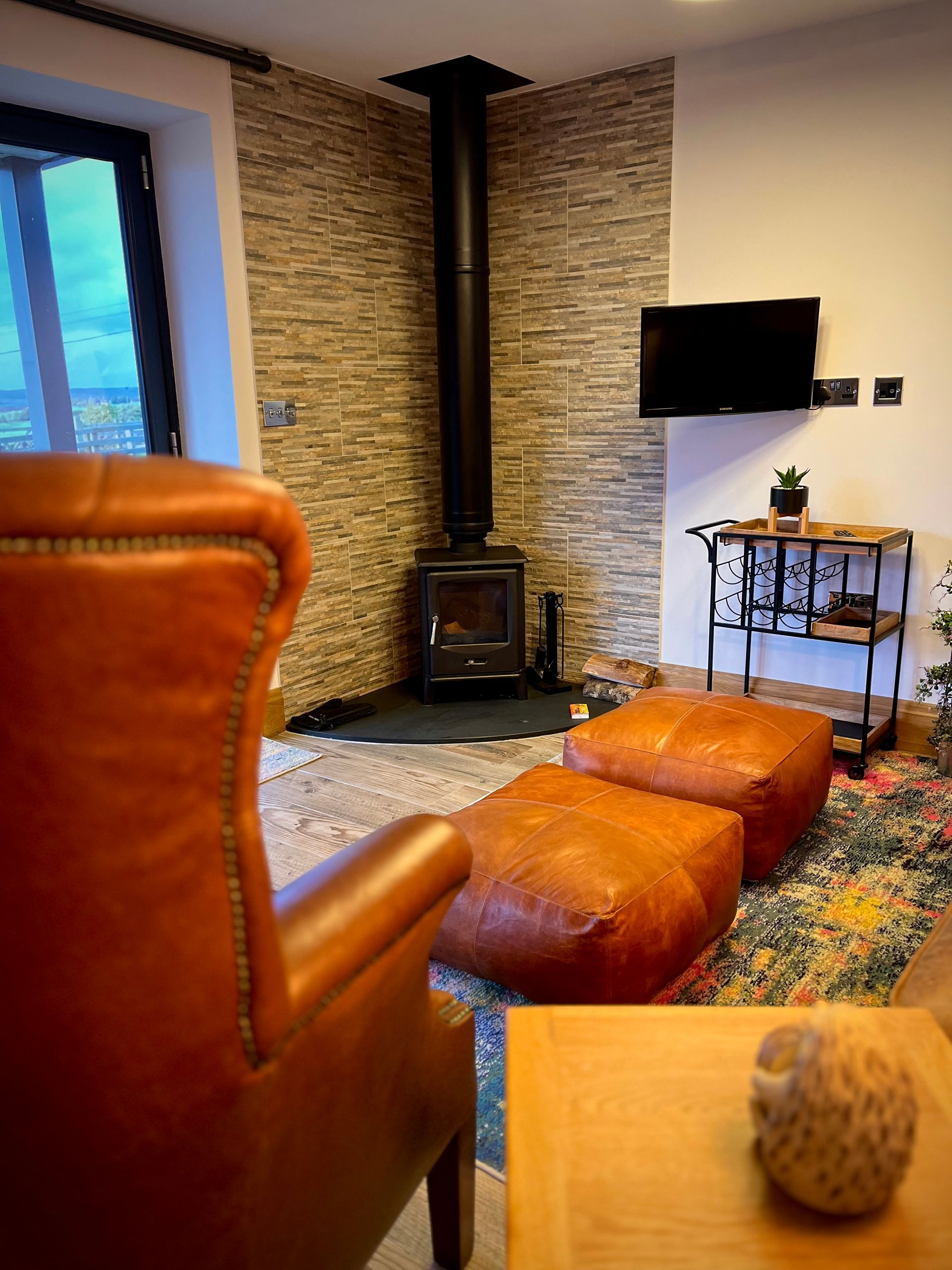 The open living area includes the lounge with log burning stove, dining and kitchen areas with a large full width, fully glazed, bi-fold door to make the most of the outstanding views. The cottage can sleep 4 people with a good size double bedroom with direct level access to a shower room and a double pull out sofa bed in the lounge.